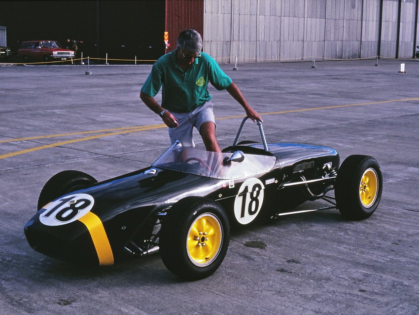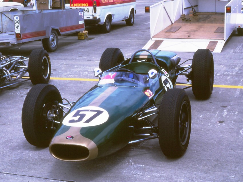 "You put your left leg in, your left leg out..." Again, shows the concrete at Whenuapai - not to mention John Holmes and the Lotus 18 before it reverted to the 15" wheels.