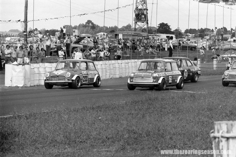 0-1300cc action here, with the Mini's of Reg Cook and Rex Hart, plus Jim Stone's Escort. Note the wheel diameter on the Cook Mini.
