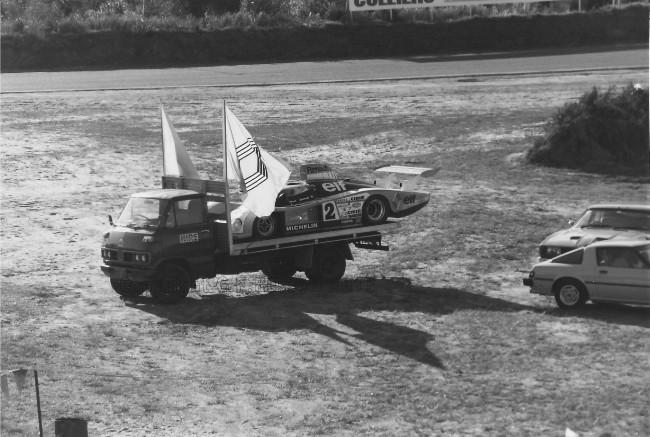 These black and white images were taken on the day that Renault brought a Le Mans car to Amaroo Park and paraded it around on the back of a little truck - I am unsure of the date but it must have been post-June 1977 as they were "celebrating" their Le Mans win.]