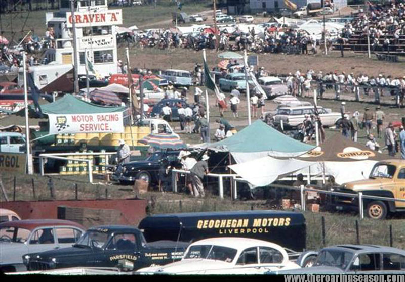 Hi Stephen,I will post another similar shot at the same spot but I am almost sure this was during the actual ATCC but you may be able to comment with your excellent knowledge on this period.A lot of these were previously posted on a thread about the 1964 ATCC some time back on T.R.S. Steve will be starting a couple of new threads soon featuring some great shots of Lakeside around the same time period. All these were colour slides taken with a quality camera and thus Ray has painstakingly converted them to digital and at the same time has done some colour enhancement as after half a century a lot of them are starting to deteriorate.Prior to this most of our shots were done with a budget box brownie in black and white prints and are therefore not suitable for posting.
