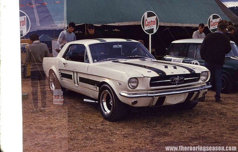 [QUOTE=Steve Holmes;32188]I love this shot of Pete Geoghegan's Mustang in the pits, in its later guise with Castrol sponsorship. Note the nicely flared wheel arches, which appeared on the car later in its time with Geoghegan. Note also the beautiful megaphone exhaust dropping out behind the front wheel. All eight cylinders spent their used gases through this one pipe. This would be early 1967, before he switched to his new '67 model GTA for the ATCC.