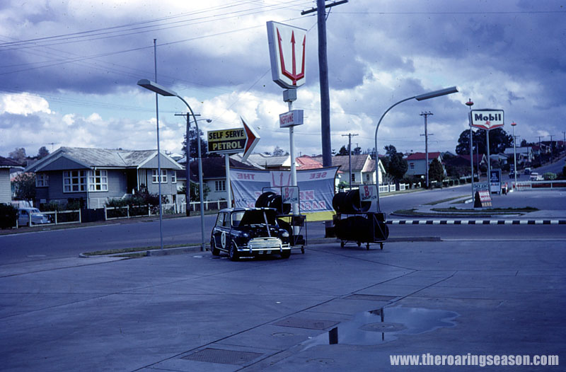 This was the Service-Station site on the corner of Hamilton and Newman roads at Wavell Heights ( just around the corner from my parents house ) which is a northern Brisbane suburb,where the Neptune team would be based on their trips to Lakeside.They would typically arrive on a Friday and unload the cars for display on the fore-court for the enthusiats who came from miles away to get a first hand look.The Servo would stay open until late that night (trading had to cease at 6.00pm in those days) before the cars were locked away prior to taking them up to Lakeside early Saturday morning for scrutineering and practice. The team could also avail them selves of the workshop facilities for repairs etc. As a sign of the times that site is now a child minding centre and the Mobil opposition over the road is a medical centre(sigh),I took a shot from a similar position as a comparison but had to do it at 6.00am Sunday to simulate the much lighter traffic at that time