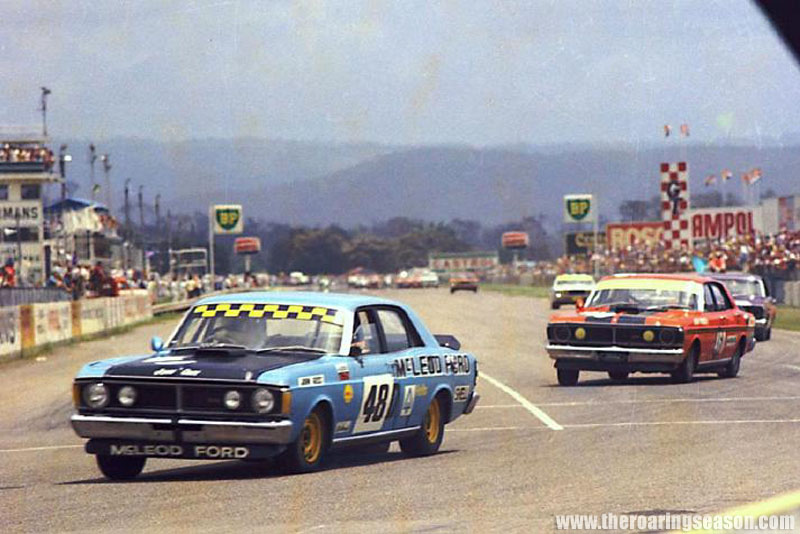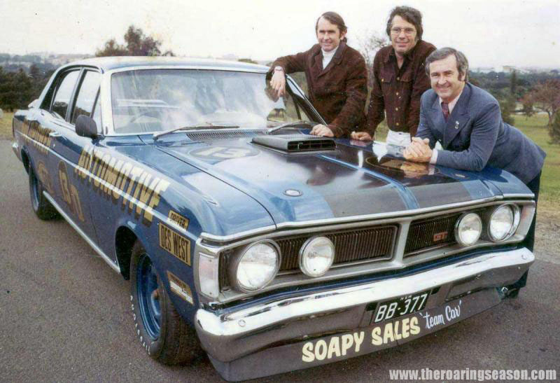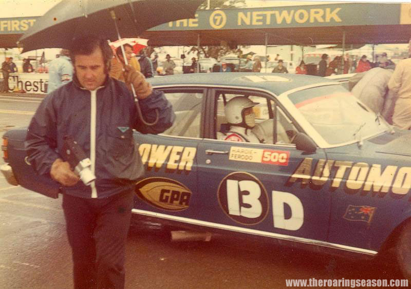 Des West again, just before the start of the Bathurst race, 1972. Note the car has sprouted a side exhaust here. Who is the bloke walking away from the car with the video camera? He is also pictured in the above photo.