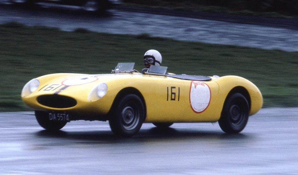 Here is the young J. H. Ganley leaping into the Lotus Eleven cockpit for the Ardmore Trophy Race with Yeats (Orchid) to his left, and Ngan(Cooper), BobGibbons(Sprite), and John Scurrah(Lotus-Consul) to his right.