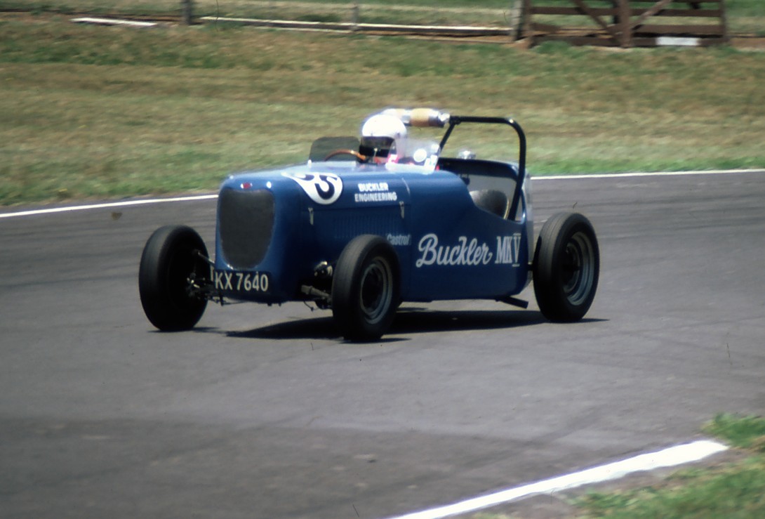 Hi Rhys, here are some shots of my Buckler. The rear shot shows the rego number, was taken at a Gold Star hillclimb at Cossies Farm Drury , 06.02.72. The side shot at NCC Pohe Island grass track, 14.01.72, shows it had a 100e diff. As I was racing without the front on, you can see it had a divided Ford 10 front beam. It was powered by a Ford 997cc. It had passed from Vic to Wayne Harris and then to me. I sold it to John Cobbald and purchased the Cooper Imp from Ian Cullen.