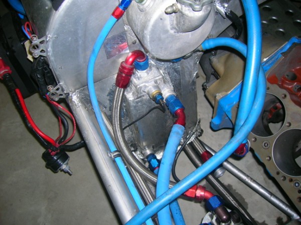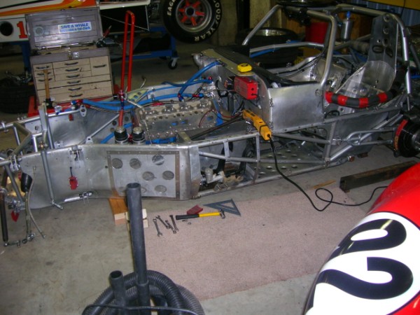 Dry sumped motor lowered in chassis, new mounts made by Robert Boyce