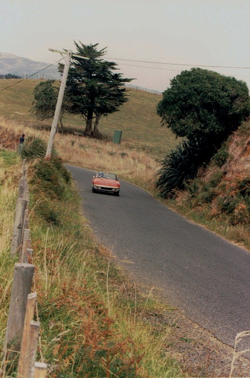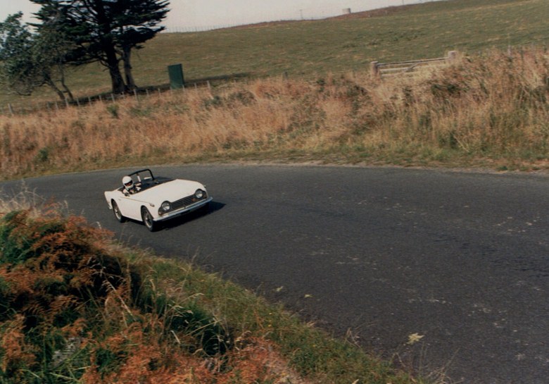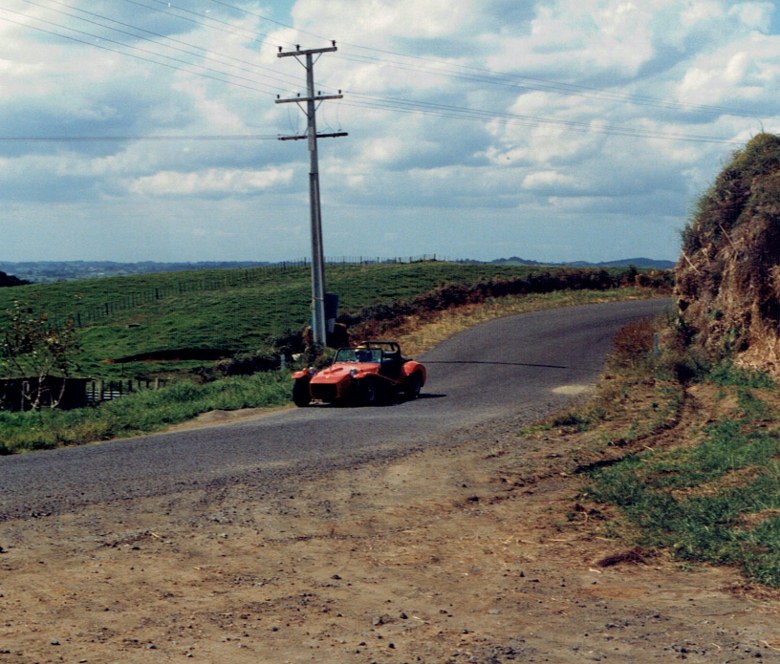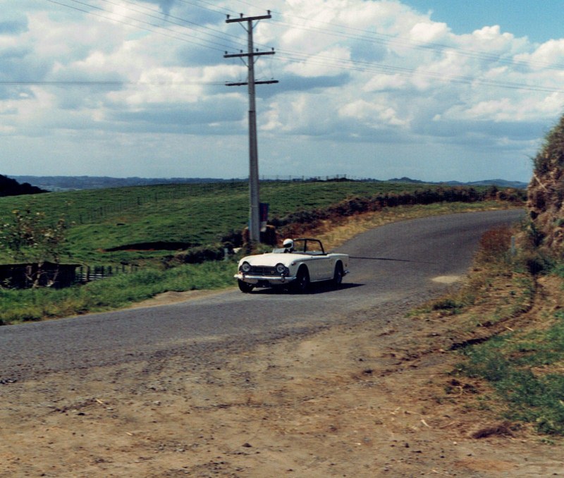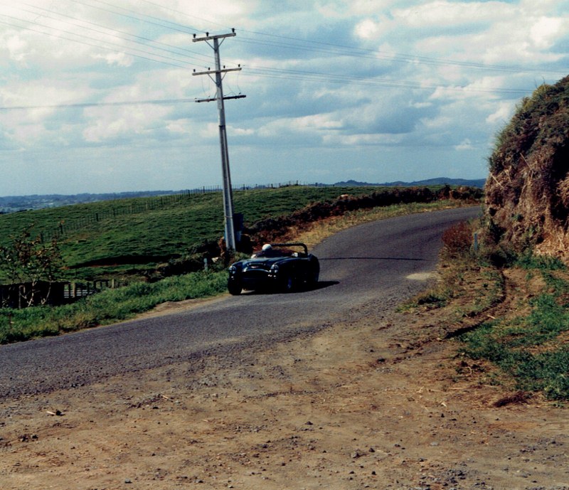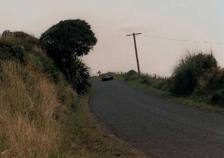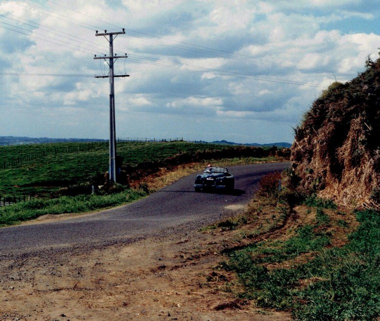 Intrerestingly the power pole background is concrete and looks new, that is probably because it was the resting place of a Jaguar Mark 11 in an earlier years Hill Climb, I was at the same spot with camera and CB Radio, the Jag gently slid off the corner and sideways into the haybale against the pole, not too much damage from memory