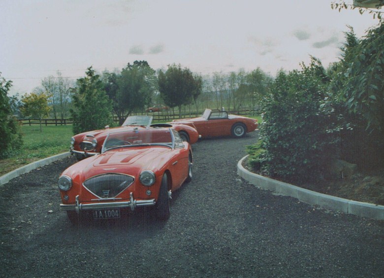 Busy driveway at Autoasis, Mark Donaldson the AHCCNZ founder and first President's place on Papakura Clevedon Road, near Ardmore. Mark raced at Ardmore in 1989.