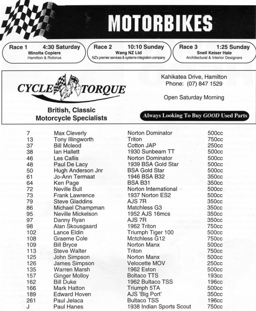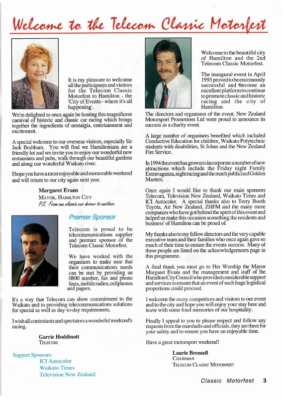 Thanks to Laurie Brenssell and his team for giving us two years of Classic Racing in Hamilton.
