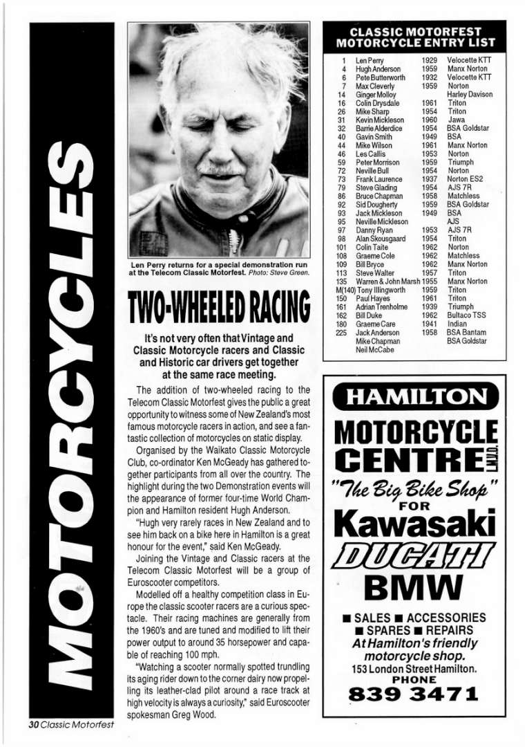 Front Cover of the Magazine and the Lead page of the article on the Telecom Classic Motorfest 1993 1994.