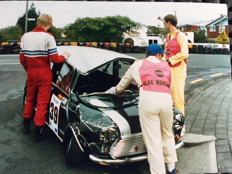 " there must be someone out there that has a photo of the Fogg Cooper S upside down on the corner leading into the Seddon road straight.