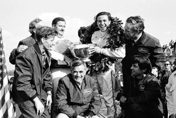The Lotus Team celebrating after Jim Clark's win in 1967 USGP.