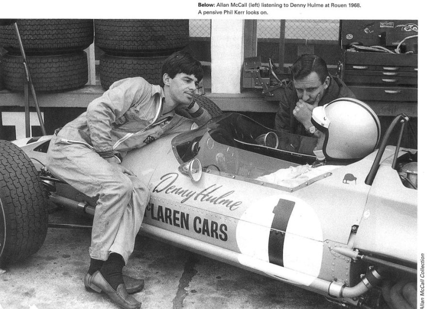It was after the 1967 USGP at Watkins Glen that Allan was asked by Phil Kerr to come to McLaren's to look after Denny Hulme's Formula One car and be involved with the Can Am cars as well. Bruce and Allan had a lot of respect for each other and Bruce was most supportive when Allan wanted to move out and build and drive his own car, the Tui.