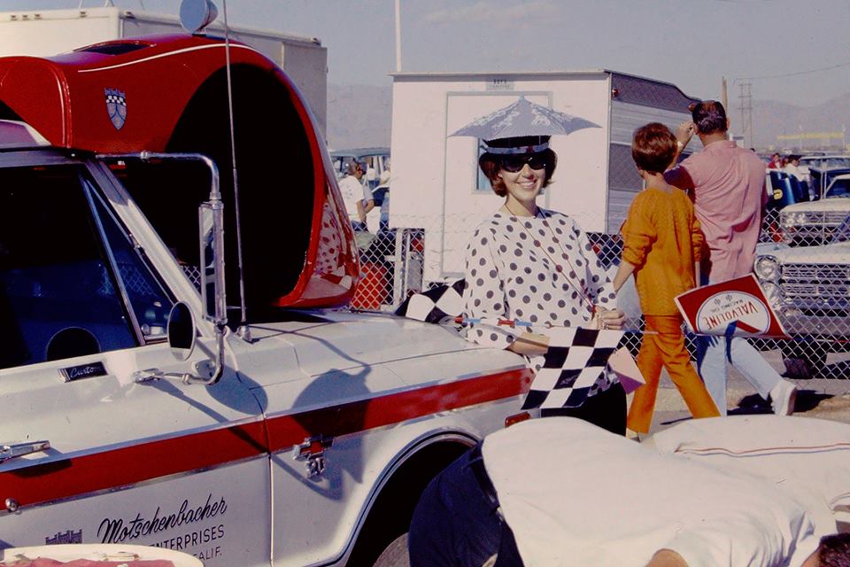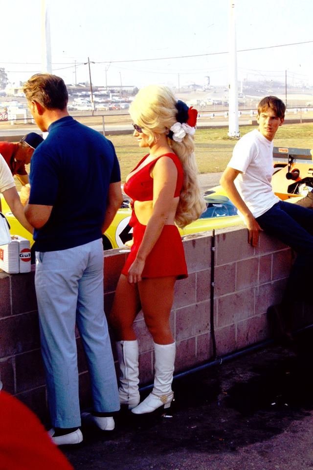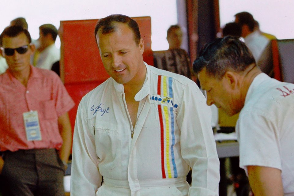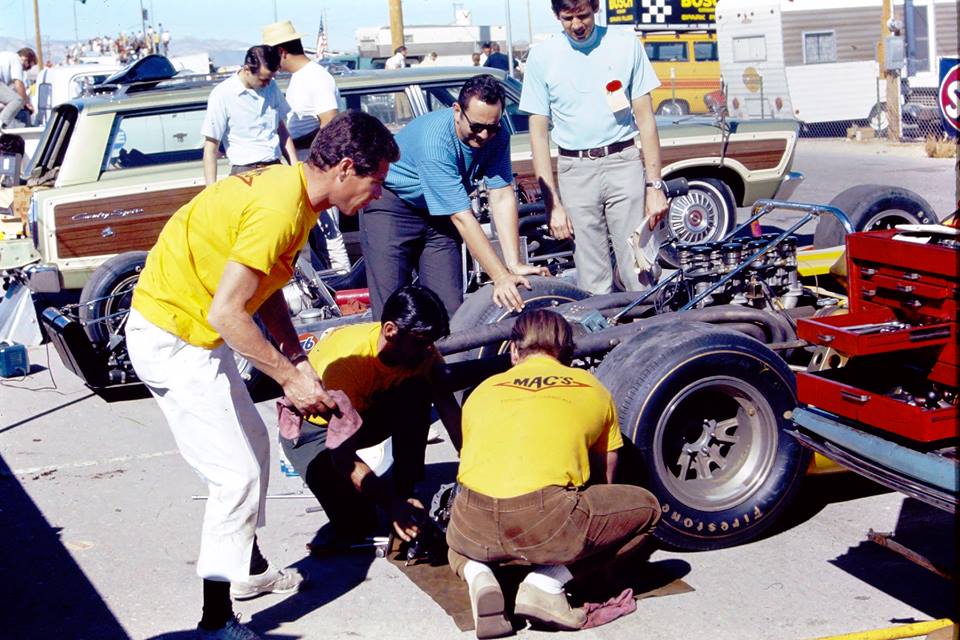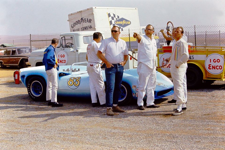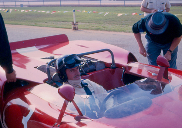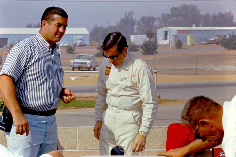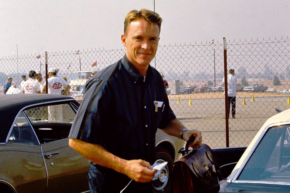 Dan Gurney, collecting some bits from his rental car. Note the brand new Camaro parked next door.