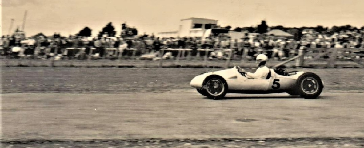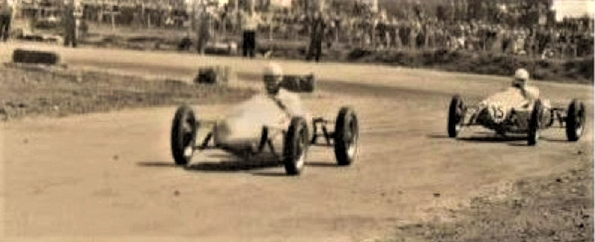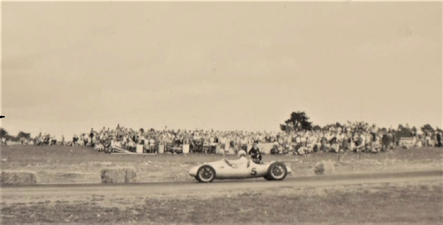 Doug Lawrence racing away at the back of the field in a Citreon 15 # 32. (Perhaps leaving the spare wheel on slowed him down !)