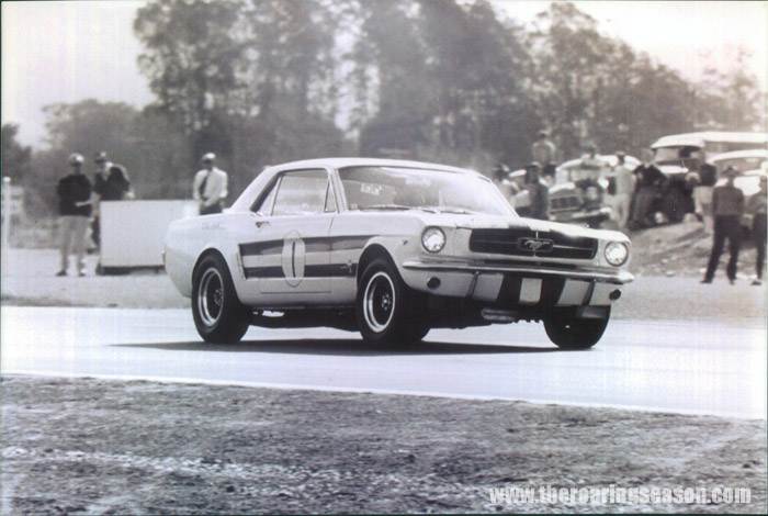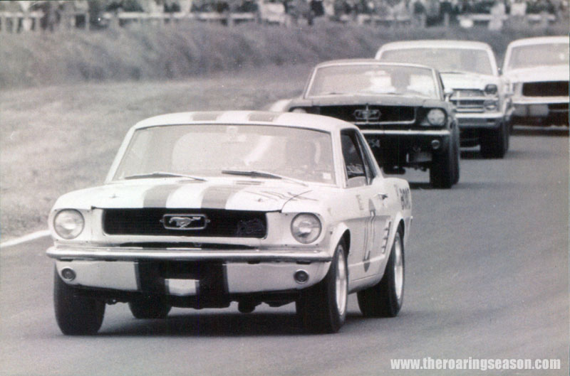 Ford muscle line-up, as Paul Fahey leads Red Dawson in the ex-Ivan Segedin Mustang, Robbie Francevic in the big block 427 Fairlane, and Frank Bryan in the '67 Shelby that Red would take over the next season.