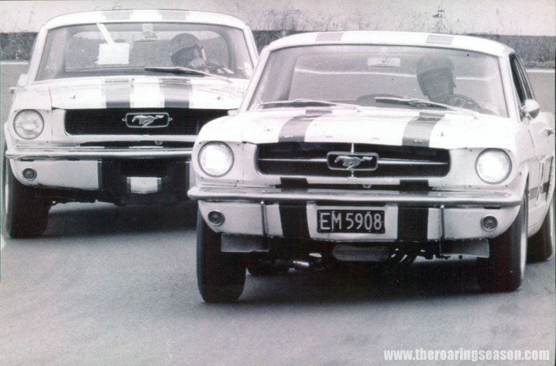 More battling Mustangs. Rod Coppins in the ex-Pete Geoghegan car leads a crossed-up Paul Fahey. What a neat shot!