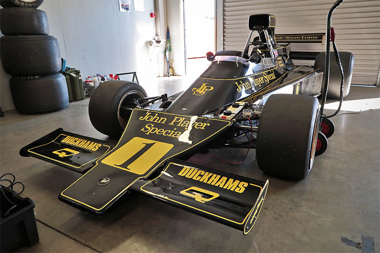 "The # 1 Lotus 76 /1 driven by Englishman Andrew Beaumont, was first driven by the late, great Ronnie Peterson in the 1974 GP season. It is a good looking car but was very disappointing to Lotus that year. It started in 7 races and did not finish in any of them !