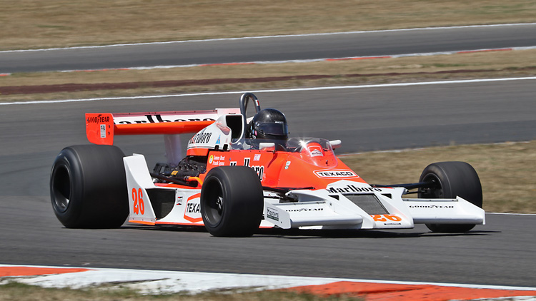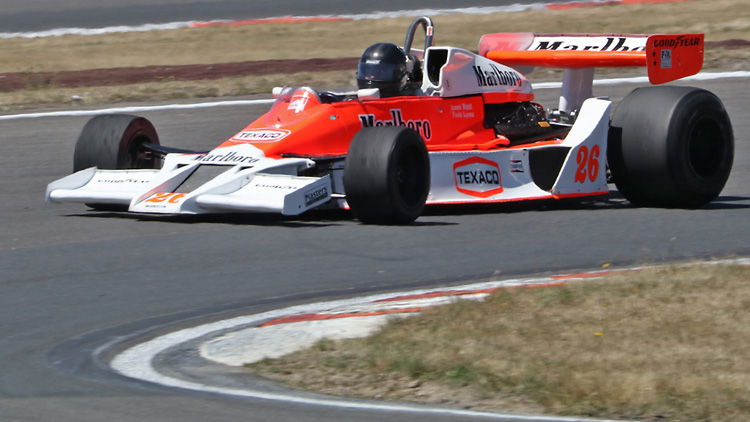The # 26 is a McLaren M26-1 driven today by Frank Lyons was first raced by Jochen Mass in Aug. 1976 and came 4th a the 1977 British GP.