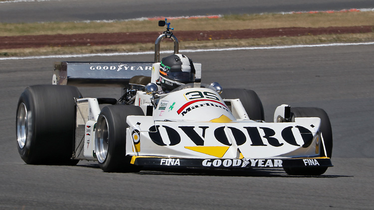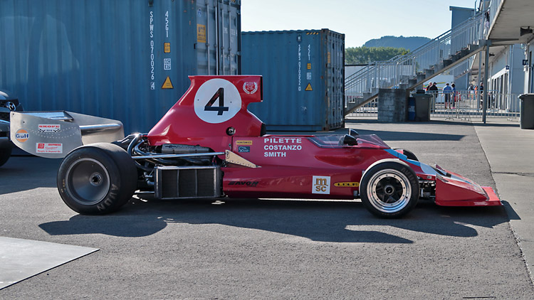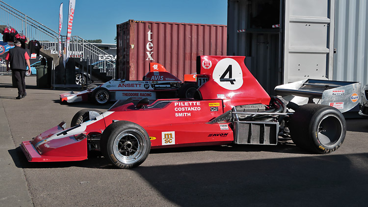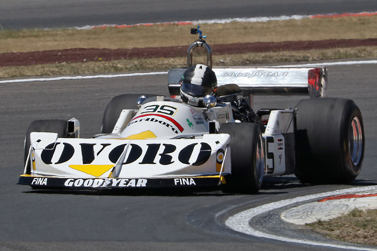 The # 35 March 761-4 driven today by Tommy Dreelan was first raced by Arturo Merzario and Vittorio Branbilla during the 1976 GP season.