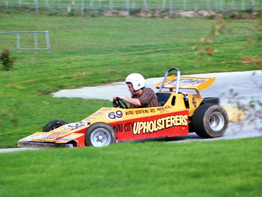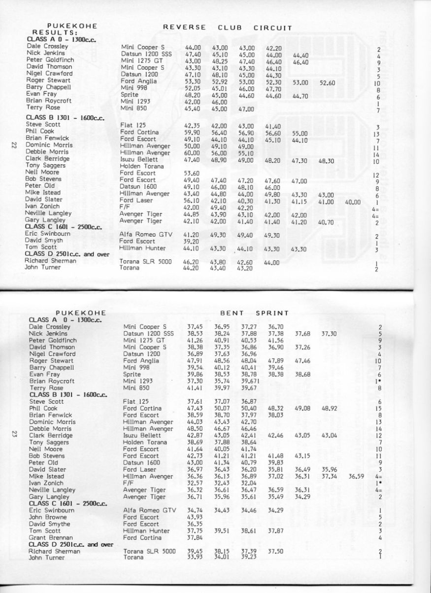 The NSCC team of flag marshals I hooked into, just like the Motorsport Club today, were out most weekends, and my good friends Keith and Liz Andrew were in the thick of it. Kevin, waving the start flag here, is now well known to some of you, as a keen member of the Waitemata VCC, running his MG or Wolseley Hornet special.