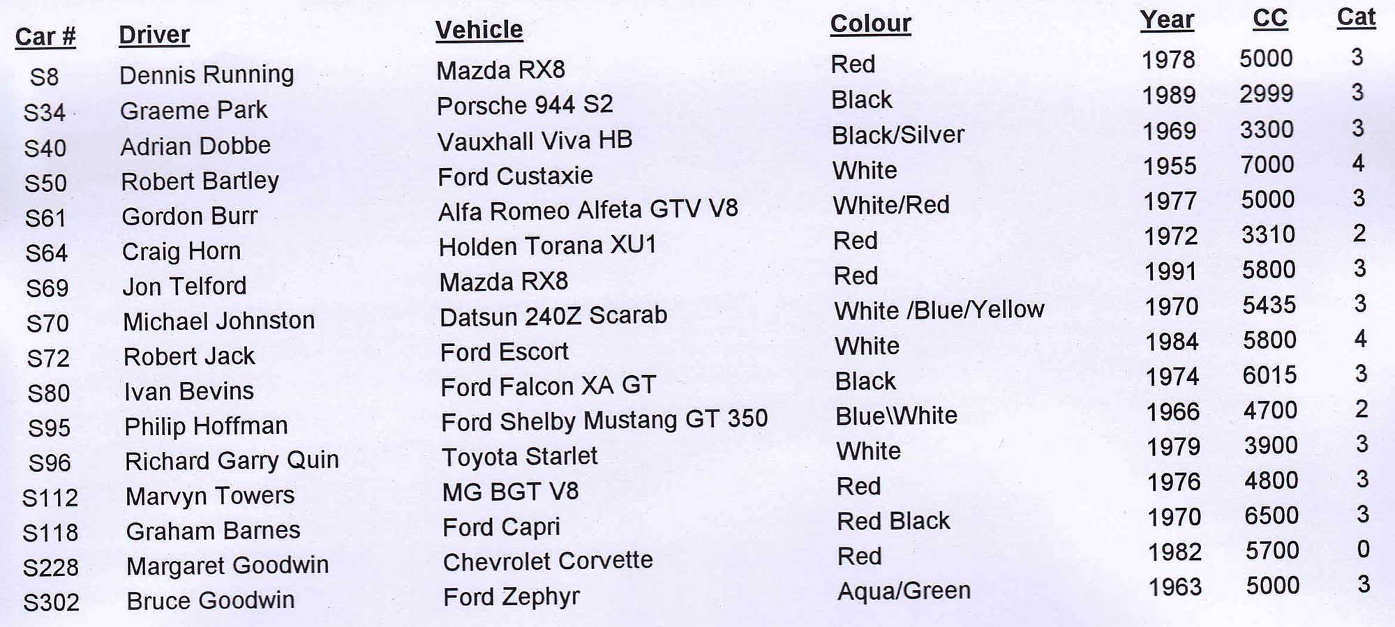 We now have 27 cars so for those wanting see a rip roaring field there- you wont be disappointed.