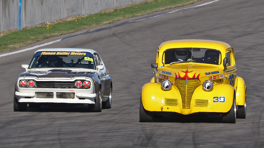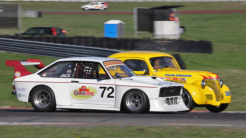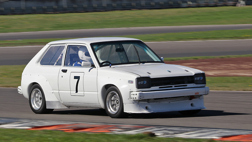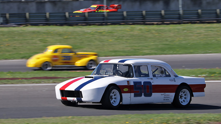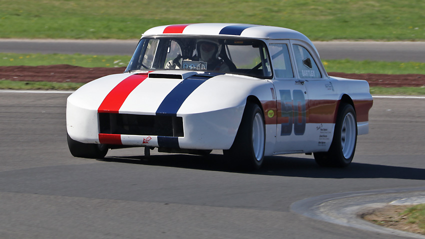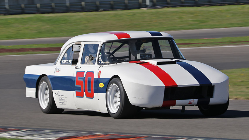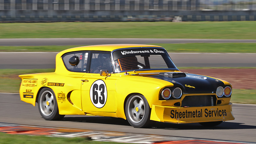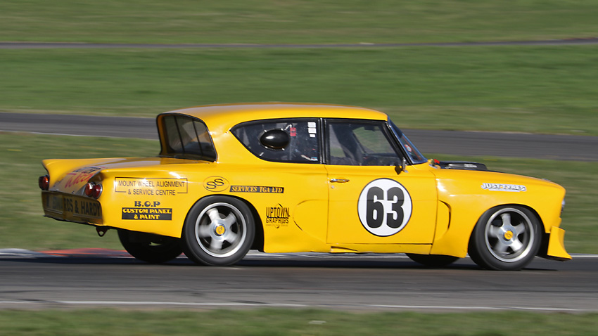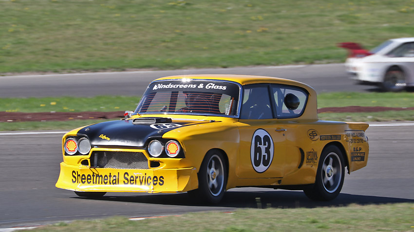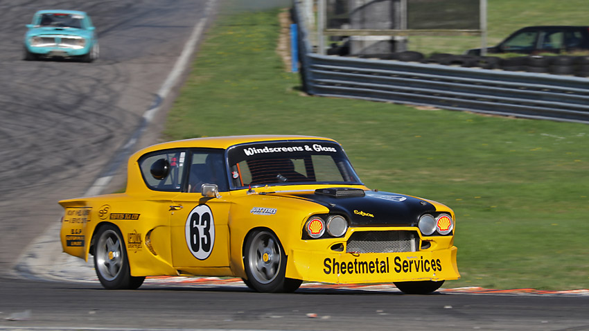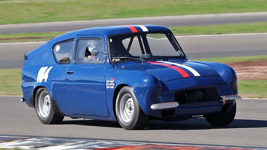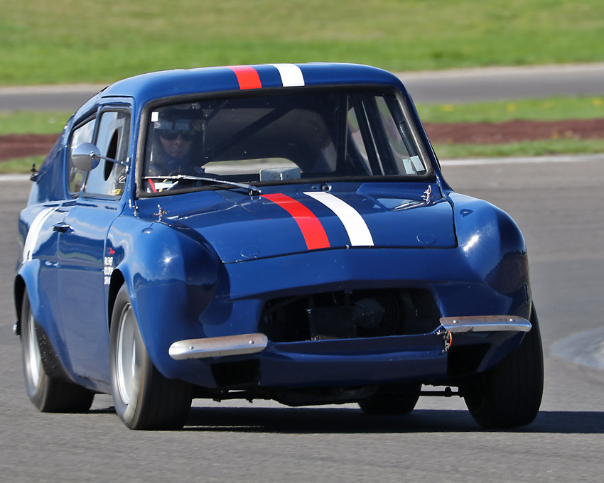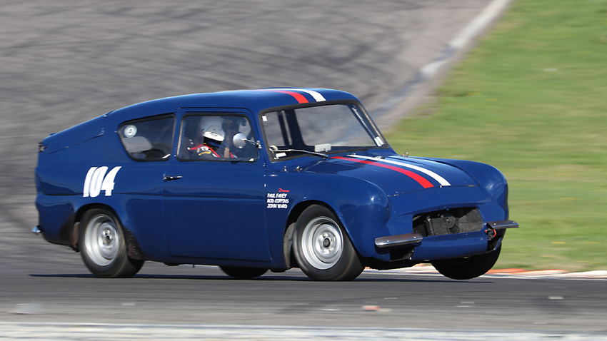 The head on one with Craig in the Anglia , always like seeing the driver in an open faced helmet.