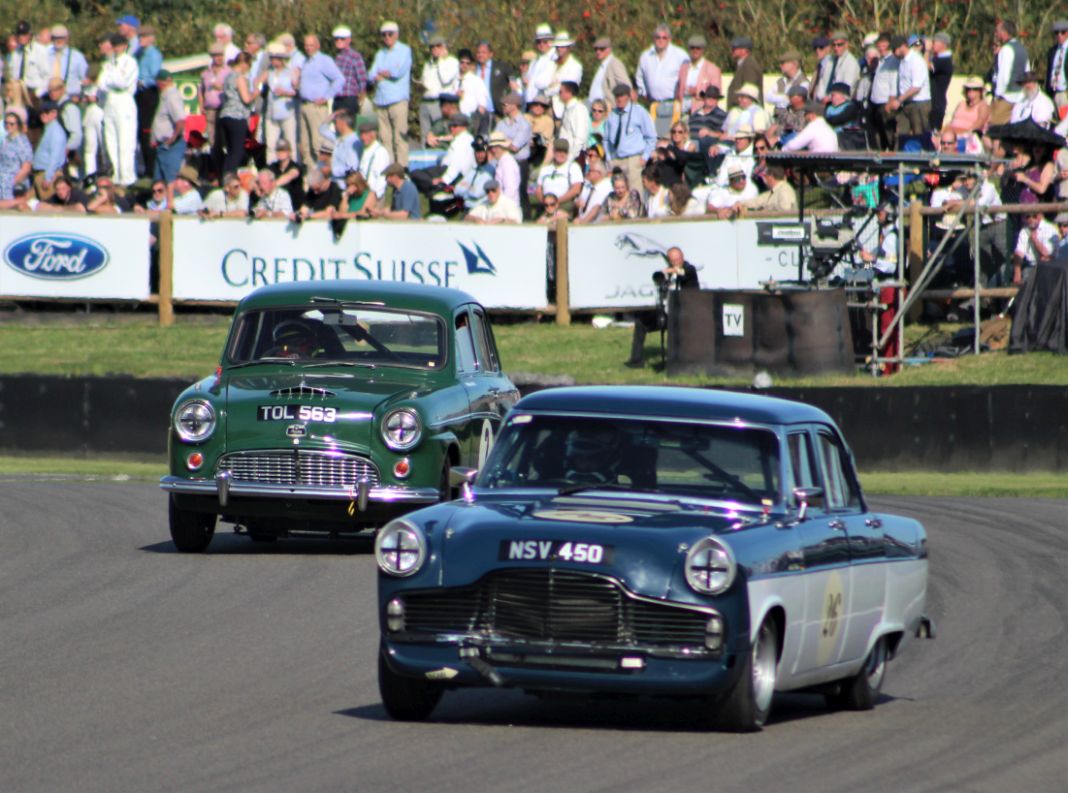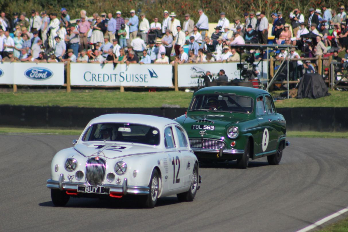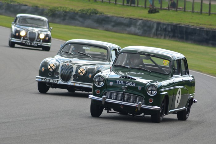 There was only one big Austin racing at Goodwood in 2019. It was the Nick Jarvis 1958 A105 of 2639cc, driven by Benoit Treluyer. It had a great dice with a 3.4 Jaguar and after the Jag had a minor off, it then battled with a Mk II Zodiac driven by Andre Lotterer.