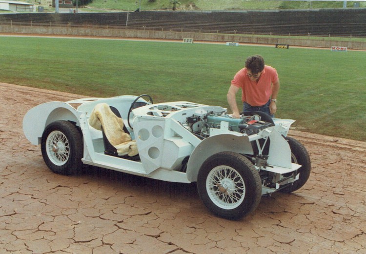 Brad Chibnall - then President of AHCCNZ - and his Healey, part restored but running, he did a lap of the track