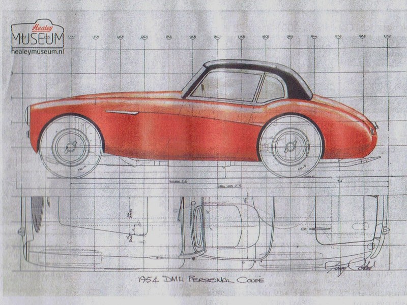 Sketch of the Healey 100 Coupe of which two were made and one was Donald Healey's favoured transport for many years.