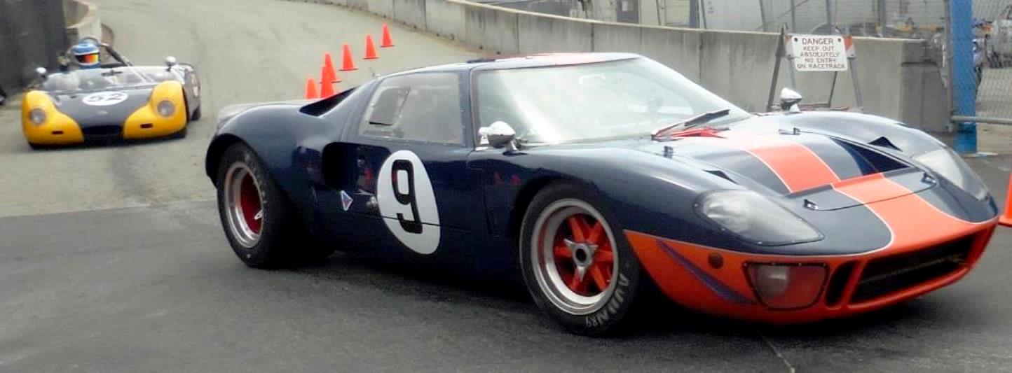 The MacAllister 1966 Ford GT 40. 5 litre engine. # 9 followed by a 1965 Merlyn Mk6 # 52