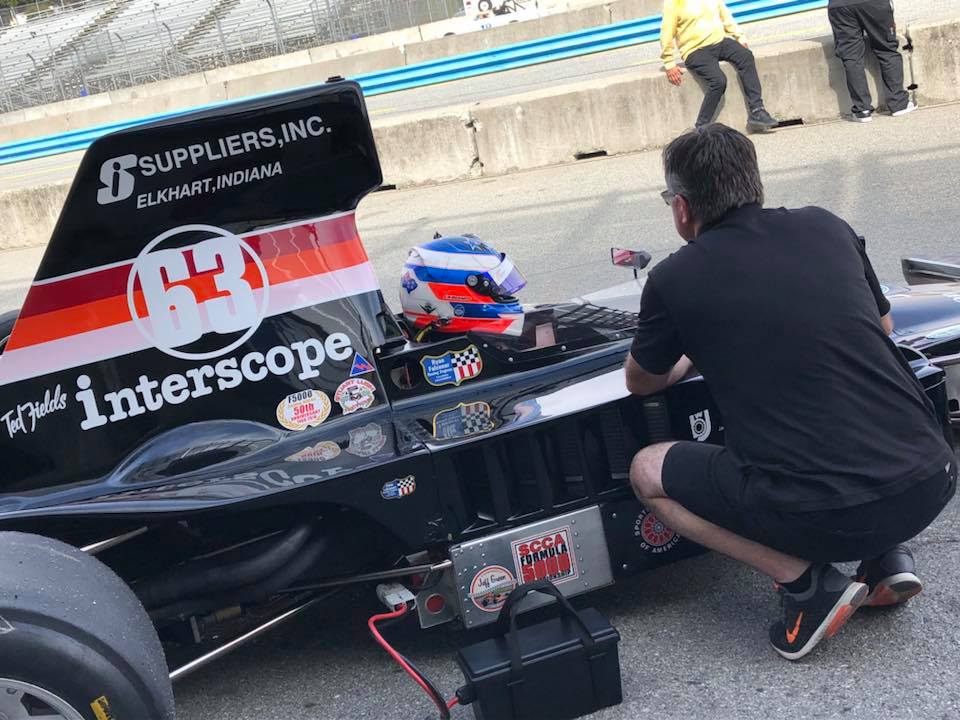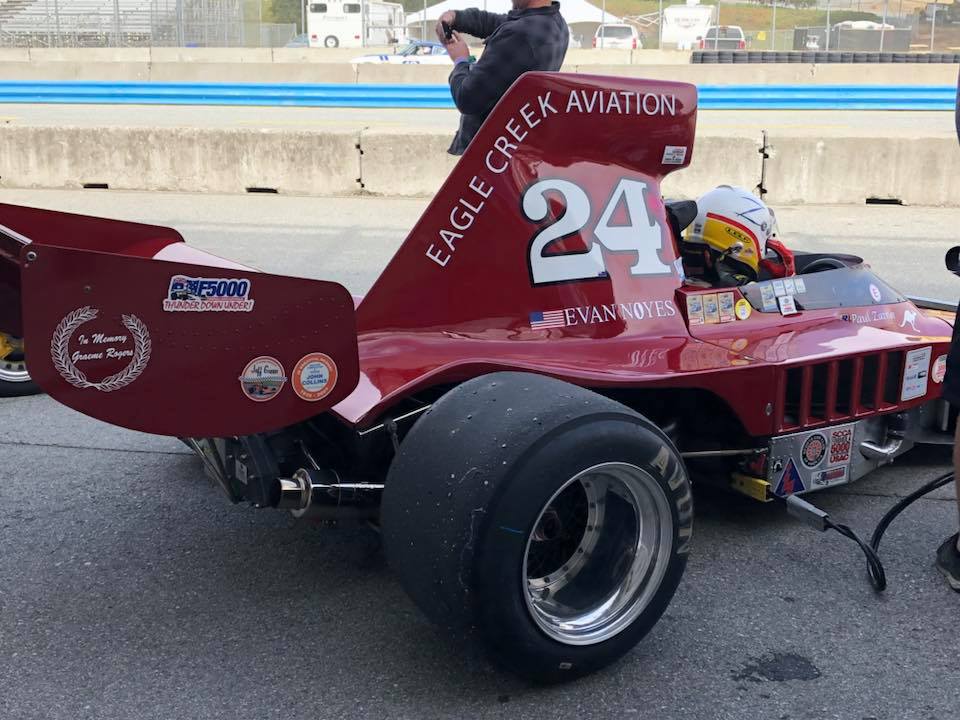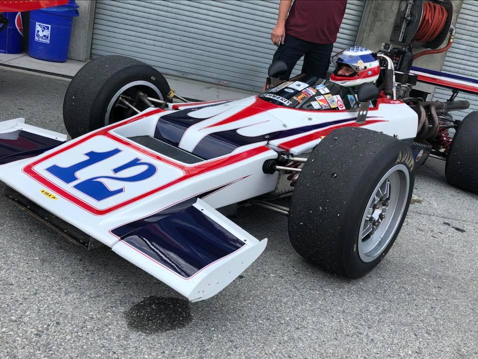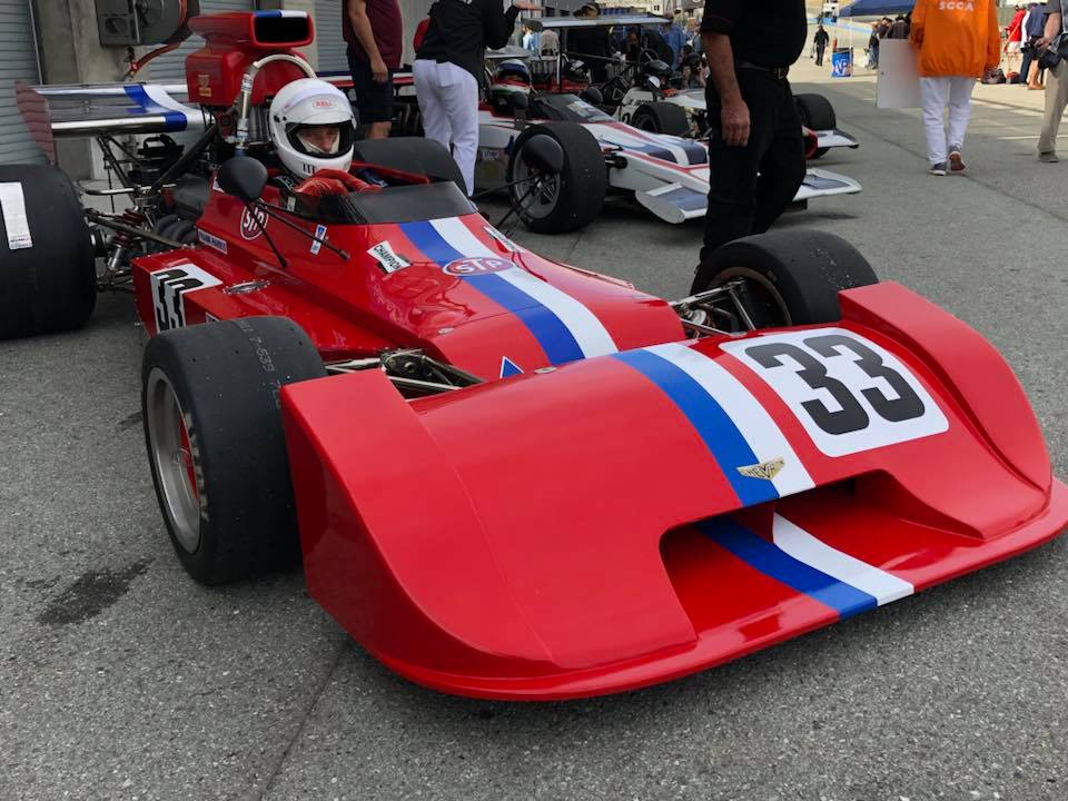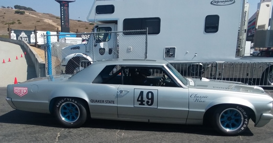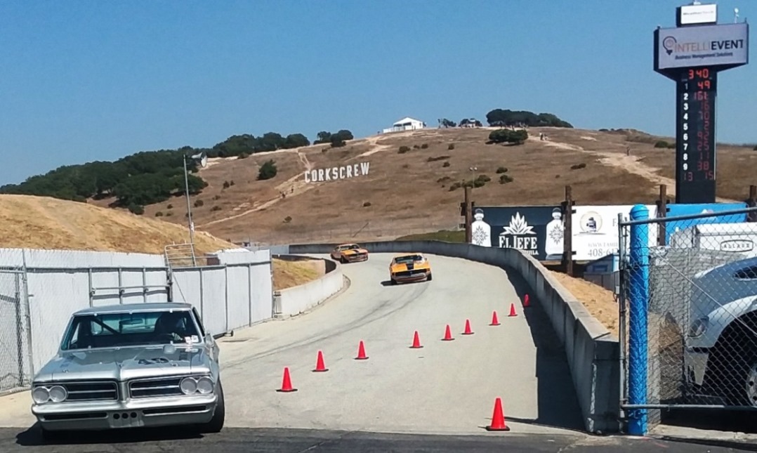 You can see the race results on the Laguna Seca scoring tower in the background as the Tempest comes off the track.