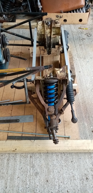 The new suspension looks a bit tidier than the old parts even though the new A arms, turrets, uprights and stubs date from 1959 and the type 12 disk brakes are from 1962 but more importantly it should all work together and give a better ride, more control and better braking than the poorly matched setup it has replaced.
