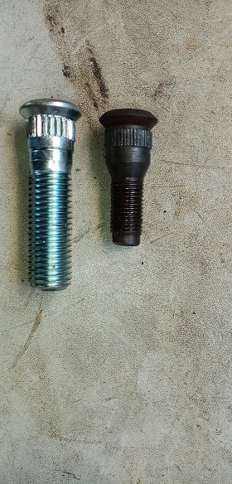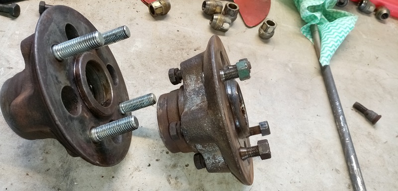 One of the many small upgrades for safety is to replace the 3/8 wheel studs with Land Rover Freelander M12x1.5 studs, I had a few Heralds in my teen years and can remember tightening the wheel studs and braking 2 off the small studs are barely strong enough for a light car like a Herald so it is common to do this mod when upgrading suspension or hotting up a Herald or Spitfire for track work, the freelander studs have the same shank size as the stock ones but are thicker and longer so they are much better suited when fitting wider wheels or mags.