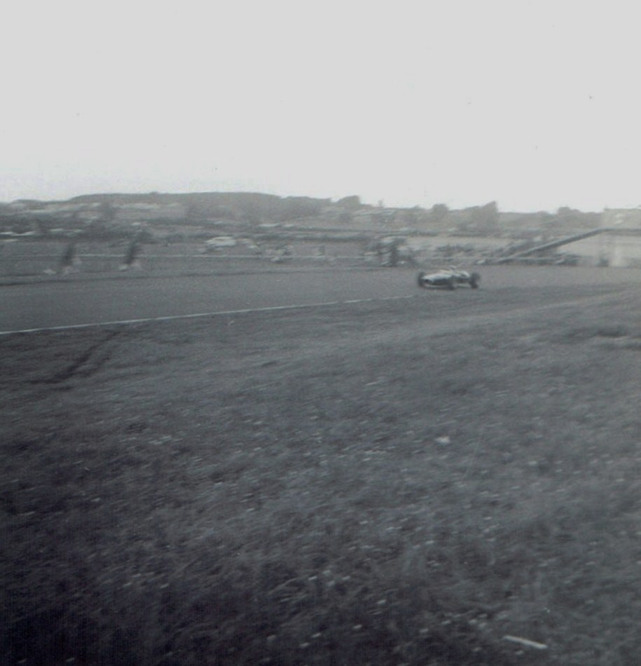 My view of the Elbow showing Bruce McLaren catching up on Jim Palmer with Jack Brabham approaching on the right.