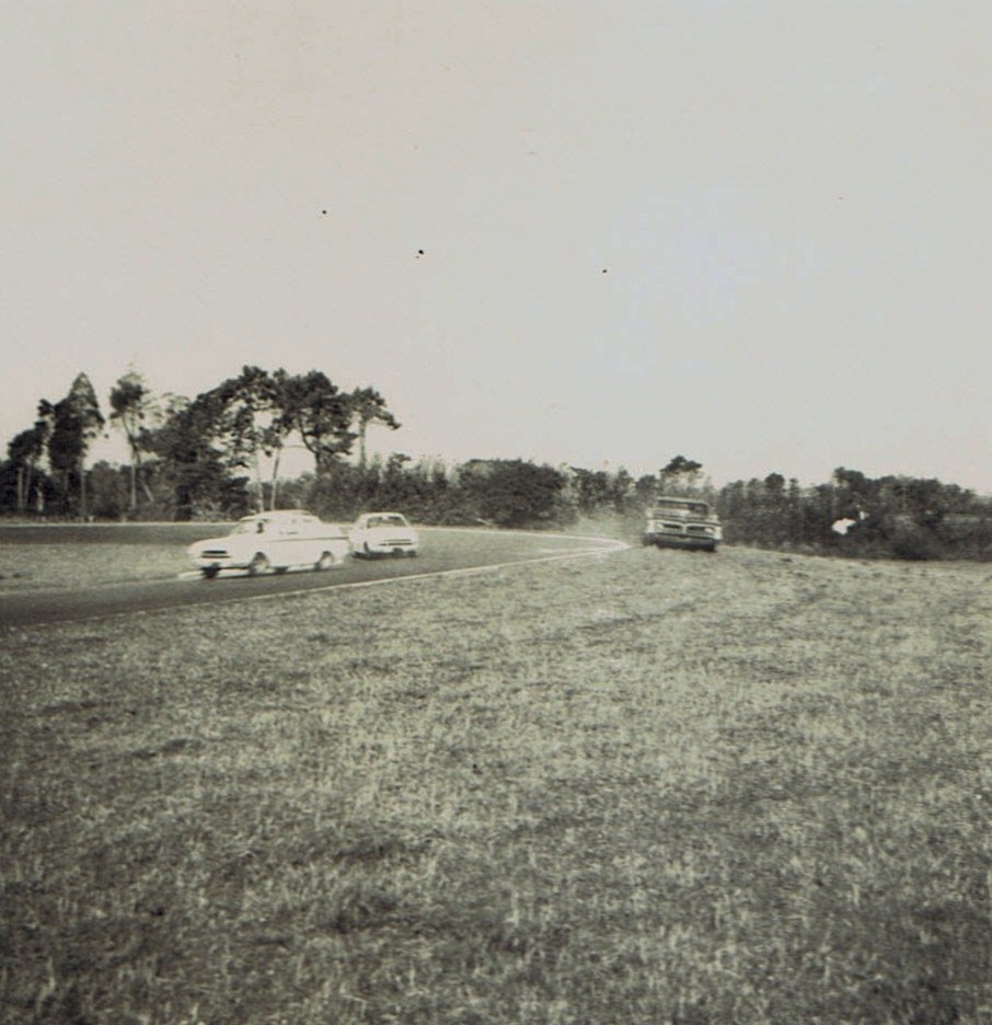 a lot of water in that ditch too, many a car went in there over the years, including a new at the time Ferrari Dino
