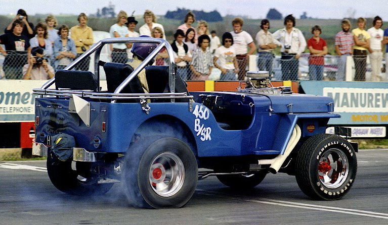 I love this one. The Shadwick brothers blown Jeep. What a beast! Someone may recall better than me, but didn't this car feature in the second Weetbix card series?