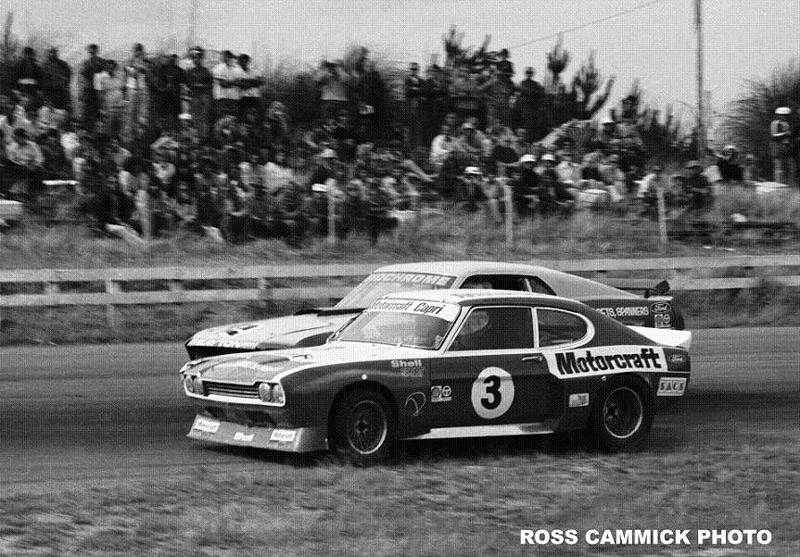 Following Dawson's violent crash in the car in 1976, it was repaired and sold to Australia. I can't remember if John Briggs was the owner, or just the driver. Either way, it returned to NZ for the 1978/79 Open Saloon series, and can be seen here leading Leo Leonard in PDL II.