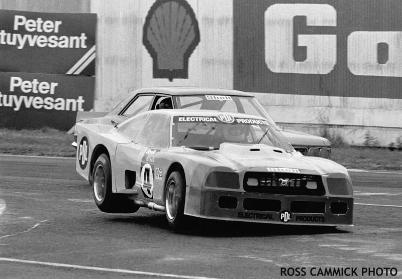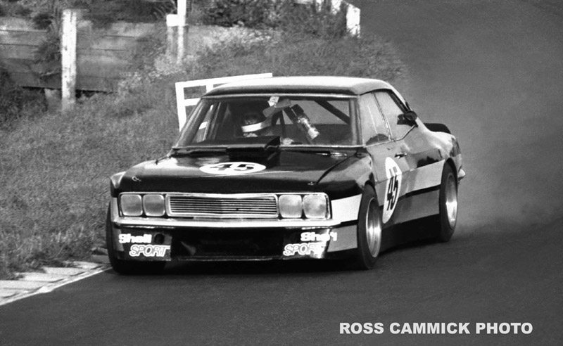 This is the car as it raced in New Zealand, at Bay Park, in late 1975, on its way from the US to Australia. Note the wide wheels, as it raced in IMSA. Moffat would have to fit the car with the maximum 10 inch wide wheels in Australia.