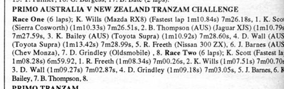 The NZ v Australia Tranzam Challenge was held in 1992. Two races were run at Manfeild, Bay Park and Pukekohe.