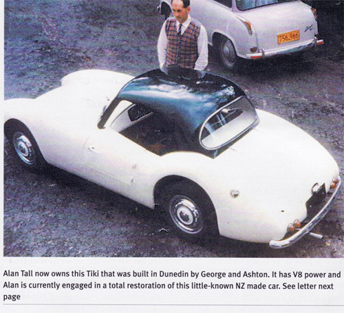 Just another couple of points — Bill had no idea where the "TIKI" came from as they had never put a name on the bodies when they built them. Bill Ashton retired to Alexandra and the car now resides only a few blocks from Bill's house!