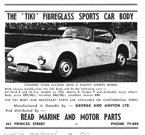 He recollects about 12 Tiki bodies being made, but very few ever got on the road. He made one for himself at his Sunbury St, Dunedin home and the wide body version made in their factory (George and Ashton Ltd) for a client who lived in Pine Hill.