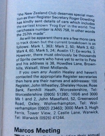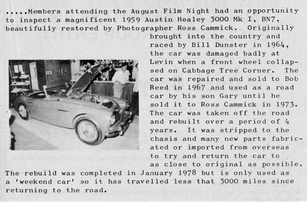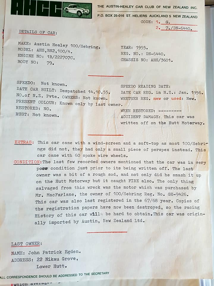 Jim Reece an Austin Healey guy, his cars have featured on the thread, put together a Register Record of the car back in the early 1970's when involved with the Austin Healey Car Club of New Zealand.