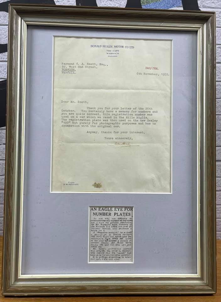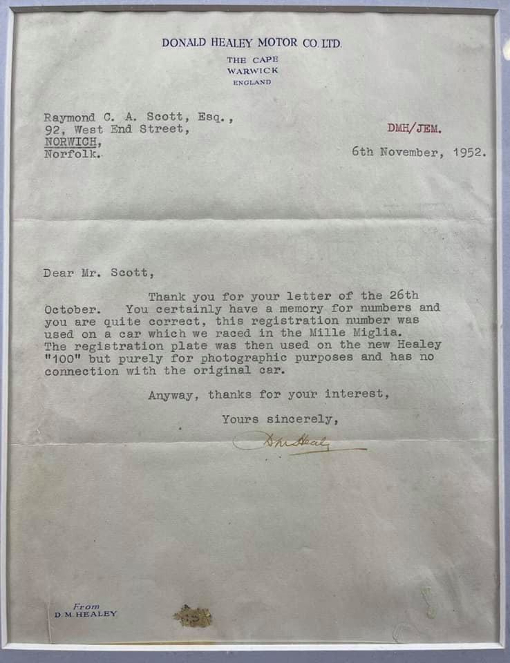 The letter - dated 6th November 1952 - not long after the London Motor Show where a " Healey 100 " became the " Austin Healey 100 "