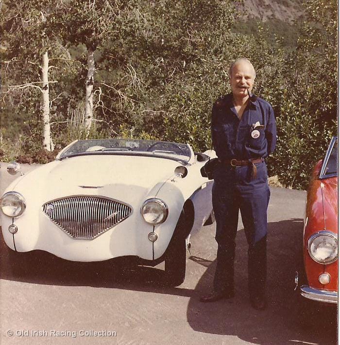Moving to the USA - Geoff Healey standing beside Jerry Liudahl [ from Oregon ] 100 at Snowmass in 1982 at the 30th Anniversary of the Austin Healey gathering where around 1000 AH enthusiasts attended including 11 from New Zealand. [Jerry Liudahl photo ]
