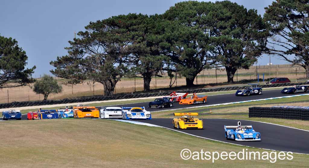 More big-bore Sports Car action, just prior to, and immediately following the rolling start.