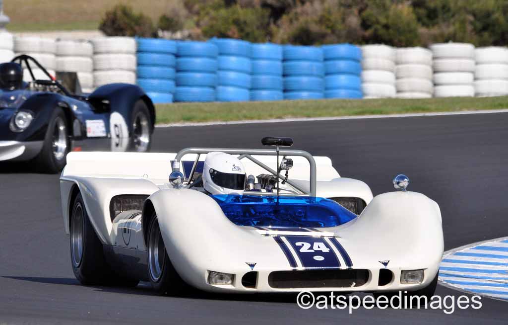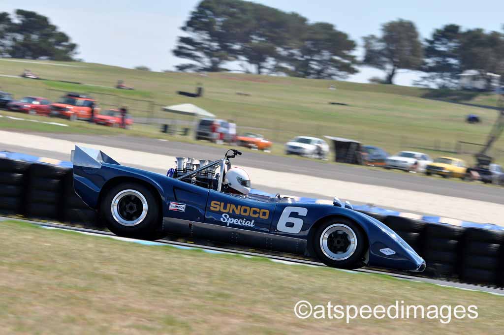This Lola T160 was originally raced by Sam Posey in the 1968 Can-Am, as part of a 2-car team run by Ray Caldwell (Autodynamics). The other car was one designed by Caldwell himself, named the Caldwell DB7, and driven by Brett Lunger. The Caldwell/Posey combination also teamed together in 1970 to run the factory backed Autodynamic Dodge Challengers.