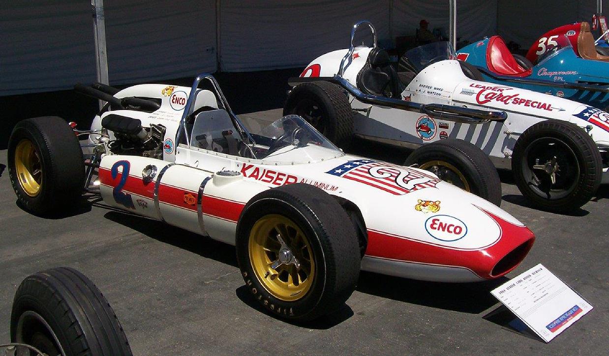 " AJ Watson's first rear-engined car was an unashamed copy of the very quick late-1963 Vollstedt design. Rodger Ward qualified on the front row for the 1964 Indy 500 and finished in second place.
