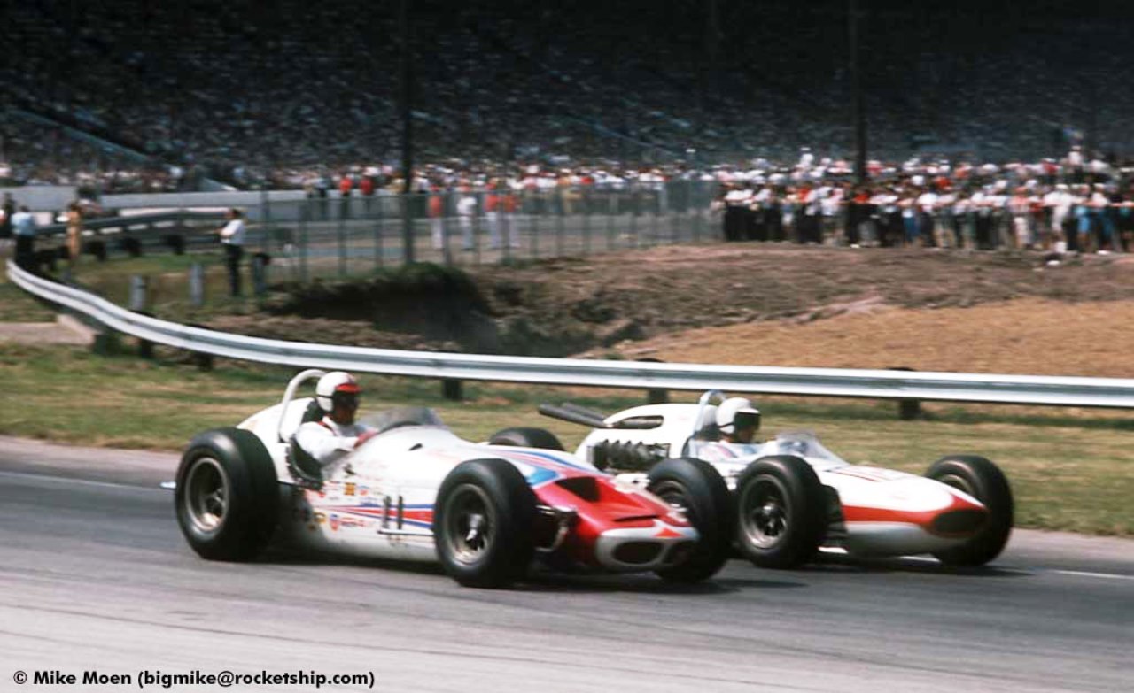 I really like this photo from 1964 showing the Watson roadster against the Watson rear engine car at the Milwaukee Raceway.