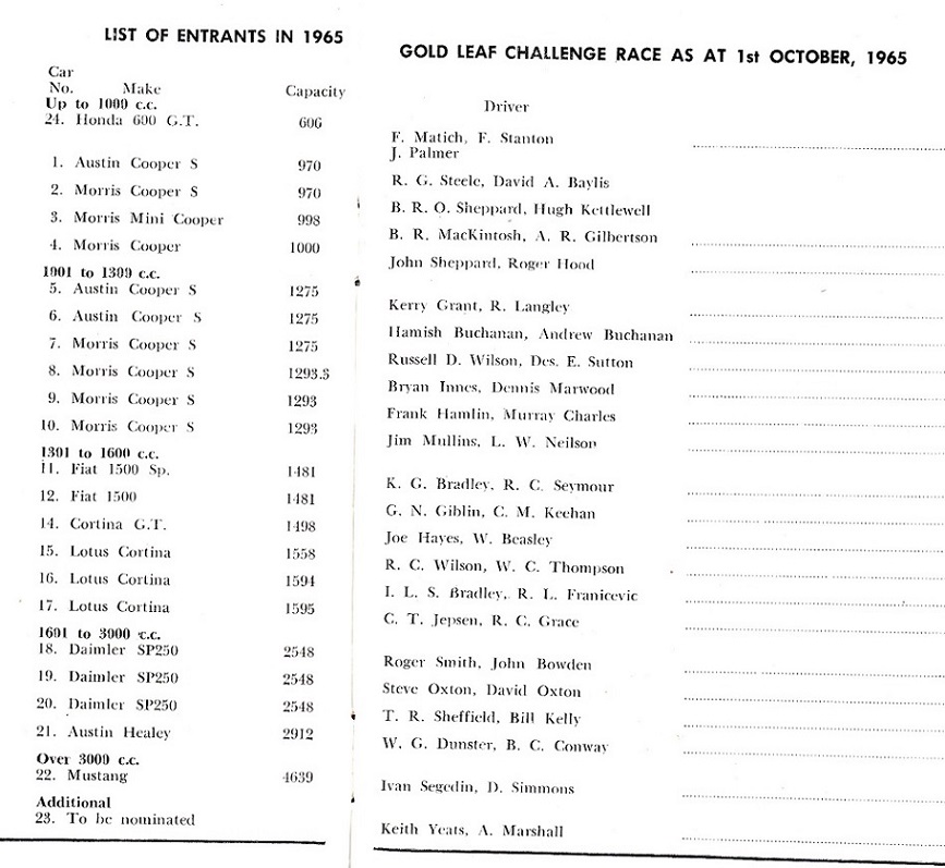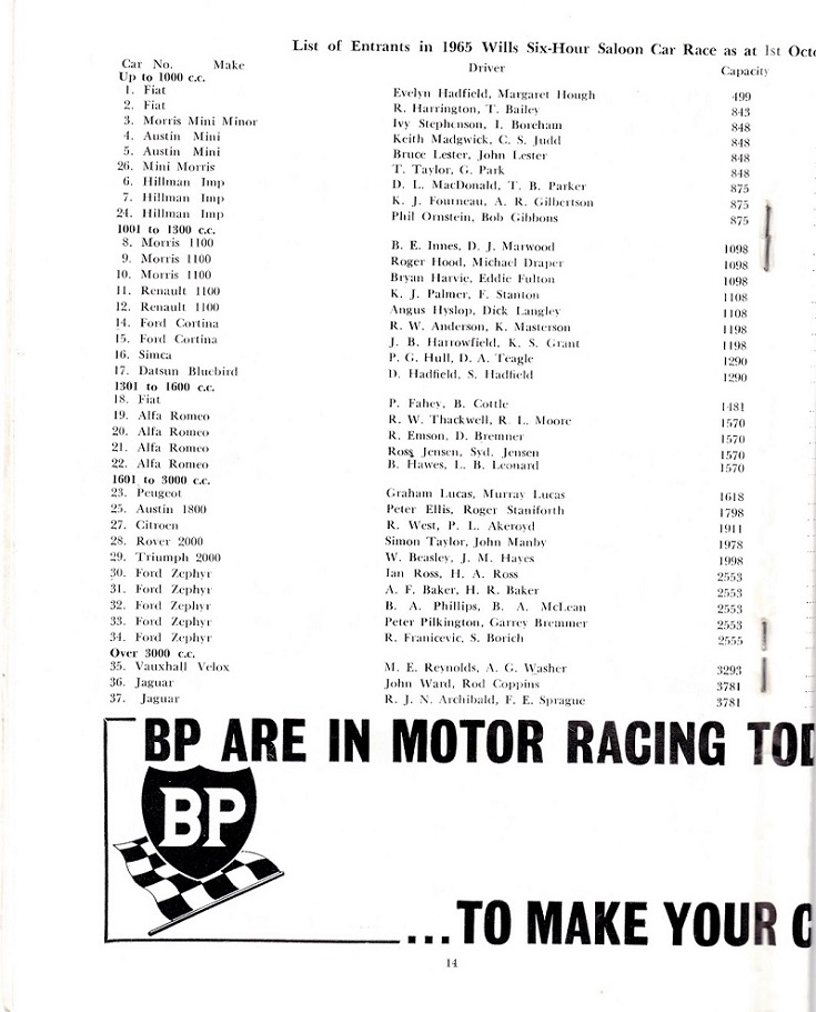 Note some of the great names in this 3 hour Challenge Race. Even Frank Matich joined in.